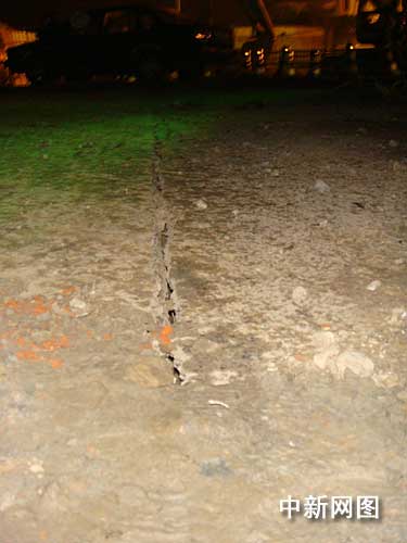 基坑南側(cè)地面出現(xiàn)的裂紋。作者:姜越潮