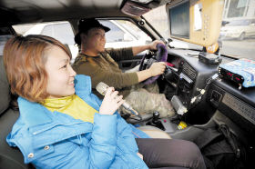 國慶長假過后,范曉明就開著他精心改裝的卡拉OK出租車上路了,沒想到,他和他的車竟然成了“明星”。“天雷他們做節(jié)目時,經(jīng)常進(jìn)行互動,看見我的車后第一個打進(jìn)直播電話的司機(jī)或乘客,都可以領(lǐng)取一份獎品!狈稌悦餍χf,“很多時候,我一上路,就有別的車跟著我,也算是過了把‘明星’癮。”