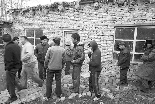 張培偉的母親和前來觀看的人與雪豹合影。賴宇寧攝