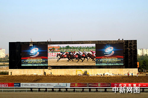 中新網(wǎng)武漢11月21日電 (劉鴻清 王一笑)顯示面積480平米、造價1400萬元人民幣的LED戶外電視顯示大屏,21日在武漢東方馬城國際賽馬場通過驗收,眾多技術(shù)專家現(xiàn)場感受了LED大屏帶來的強大視覺沖擊。
