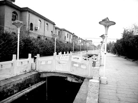 在一片居民區(qū)內(nèi)記者看到,小別墅前建有多道白色的拱橋,橋下水池里喂養(yǎng)著成群的金魚,頗有“金水橋”的意味。當?shù)貛酌麐D女倚在自家門口,抱著孩子曬太陽。足不出戶,便仿若呆在金水橋畔,看上去十分愜意。