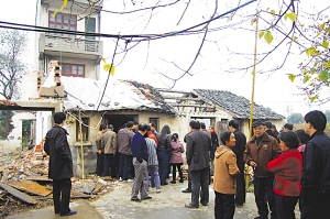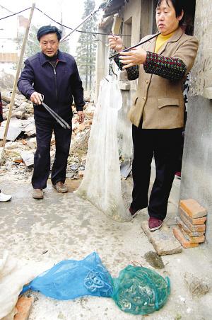 “大冬天的,怎么可能會有蛇呢,其實我們都知道是什么人干的事,可惜他們每次逃得很快,我抓不住他們!崩闲旄嬖V記者,去年年初,某開發(fā)商將他所在的整個村莊圈了下來,準備建設(shè)樓盤,隨后鎮(zhèn)拆遷辦就跟進落實拆遷工作。如今一年半過去了,除了他一家沒有同意拆遷外,整個平巷村已經(jīng)全部拆光了。從去年7月份開始,他家就莫名其妙停水了,電線也被剪斷過兩次。老徐和拆遷部門僵持的主要矛盾,是生產(chǎn)作坊如何補償至今沒有談妥。