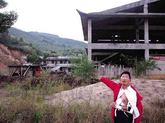 征地項目如期開建,不服氣的丘家厲一直上告!拔医K于在2004年11月1日盼來了區(qū)國土局的停工協(xié)議書,可是工程卻依然照常開工,”丘家厲告訴記者,“直到我找到省國土廳,工程才于2005年9月7日正式停工,可是直到現(xiàn)在,公墓建筑依然沒有拆除,土地也沒有歸還農(nóng)民!