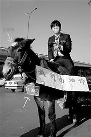 網(wǎng)友“奪命紅燒肉”在網(wǎng)上論壇貼圖介紹,近日,北京北五環(huán)的一段公路上,出現(xiàn)一名年輕男子,只見他西裝革履,以騾子為坐騎,行進(jìn)在來(lái)來(lái)往往的車流,圖中,這頭騾子的頭上貼著“BMW”標(biāo)簽,脖子上還掛著巨牛的“車牌”號(hào):馬A88888。
