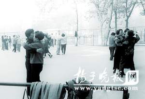 很巧的是,南京大學(xué)教攝影的謝白老師寄給本報(bào)的老照片里,也有一組關(guān)于“交際舞”的。那是在80年代后期90年代初,彼時“交際舞”早已不是青年男女用來交友、展示青春釋放活力的時髦玩意,越來越多的中老年人開始喜歡上了這種能夠舒緩身心愉悅性情的活動,于是“交際舞”開始演變成一種全民健身式的運(yùn)動項(xiàng)目。在此背景下,上個世紀(jì)80年代末的幾個清晨,謝老師在南京的和平廣場、南大操場等地,留下了許多中老年男女“聞雞起舞”的愜意身影。(張磊)