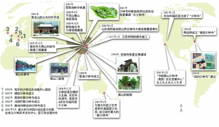 就像在世界各地都能吃到麥當(dāng)勞一樣,如今,在全球各地也能輕松地學(xué)到少林功夫。盡管少林寺方丈釋永信曾對媒體大聲辯解:我們不是麥當(dāng)勞,不愿意少林功夫商業(yè)化。但這座千年古剎分院卻遍布全球,已經(jīng)達到20多家,而且擴張的勢頭,正加速前進。
