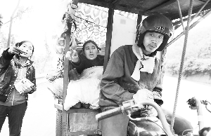為趕路,他們每天駕駛10小時(shí)以上是“最低標(biāo)準(zhǔn)”。三輪車沒有駕駛室,男人們不得不把棉衣包在頭上抵御風(fēng)寒。為減少開支,每人一天最多吃兩頓飯,臨行前,每家都準(zhǔn)備了幾箱方便面,因?yàn)闆]有熱水,方便面大都被干啃下肚。睡覺是走到哪睡到哪———男人讓出車廂在公路邊上打地鋪,女人小孩在車廂內(nèi)將就。洗臉、洗頭,更是奢望。十多天下來,每個(gè)人的臉和手都已干裂,風(fēng)刮得生痛。