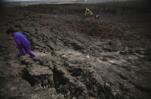 昨天,現(xiàn)場(chǎng)還圍著警戒線,地上露出一個(gè)深約4米、直徑9米左右的大坑,一旁散落的泥土,被火燒烤后呈龜裂狀,讓人觸目驚心。