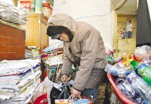10時(shí)40分許,張大爺回到家中,老人穿著一條能露出腳面的牛仔褲,沒戴手套的雙手各拎著一個(gè)塑料袋,塑料袋里裝滿了紙盒和塑料瓶。