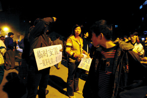 晚8時(shí)許,石井街道辦事處在夏茅文體活動(dòng)中心禮堂和夏茅老人活動(dòng)中心設(shè)立臨時(shí)安置點(diǎn),并沿街通知被疏散居民到臨時(shí)安置點(diǎn)集中,還在沿途張貼了路標(biāo)。據(jù)記者觀察,只有少部分居民前往!岸嗟鹊,看看情況,還是想回家住!毙⌒鞄е咽卦诼愤吚^續(xù)觀望。