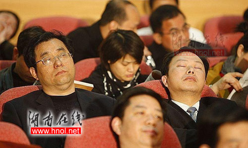 帖子一出,立即引來網(wǎng)友們一片罵聲!皷|亞睡夫”,“沒什么奇怪的,在那種環(huán)境下,如果鏡頭里出現(xiàn)一個人認認真真地在做筆記,那才讓人驚詫!薄扒宦,又臭又長,正常的人都是懶得聽的。”“哪里都一樣,最怕開會了。我也會覺得困死的,這是中國特色!弊屓艘馔獾氖,網(wǎng)友們并沒有過多地斥責(zé)臺下昏睡的公務(wù)員,而是將矛頭對準(zhǔn)了紛繁冗長的會議。“中國的會太多了,而且多半是無用的會!本W(wǎng)友“maszjq”的留言代表了多數(shù)跟帖網(wǎng)友的觀點。