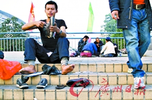 最近,“軍心”渙散了。老頭和小軍準(zhǔn)備到海南闖一闖,小路也有心同行。李練因為和老頭鬧了點矛盾,被剝奪了入伙南下的資格。其實李練也不想走。他想在春節(jié)期間攢下自己的“第一桶金”,然后擺個走鬼檔做點小生意。除了解決吃飯問題,還能有個床位,睡個安穩(wěn)覺。(文/記者石善偉、何有貴 圖/實習(xí)生劉雷 記者喬軍偉)