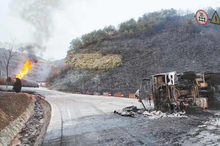 由于罐體仍在燃燒,隨時有再次發(fā)生爆炸的可能,210國道此段的交通已臨時封閉,截至記者發(fā)稿時,這一路段還在封閉中,事故處理還在進行中。(供稿 陜西電視臺《今晚播報》)