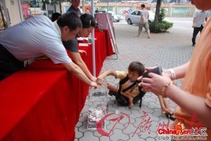 2008年5月12日下午,汶川地震爆發(fā)。在廣州華樂(lè)街的支援抗震救災(zāi)募捐活動(dòng)中,一個(gè)用手走路的乞丐,來(lái)到現(xiàn)場(chǎng)說(shuō)“我要捐款”。