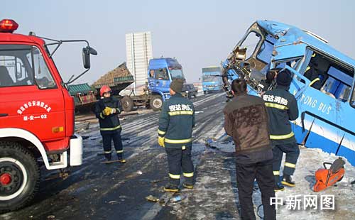 事故發(fā)生后,安達(dá)市消防大隊(duì)的消防官兵、120醫(yī)護(hù)人員立即趕到現(xiàn)場(chǎng)參加救援。據(jù)現(xiàn)場(chǎng)救援人員介紹,兩車(chē)都滑入路旁的深溝中,客車(chē)駕駛室嚴(yán)重變形,駕駛員被困車(chē)內(nèi),消防官兵趕到現(xiàn)場(chǎng)將被困人員救出。記者從安達(dá)市人民醫(yī)院了解到,該院目前收到事故中9名傷者入院治療。