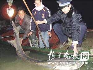 4日晚6時(shí)許,長江揚(yáng)州邗江區(qū)頭橋段驚現(xiàn)“龐然大物”,一條重達(dá)250斤的野生中華鱘鉆進(jìn)當(dāng)?shù)貪O民的魚網(wǎng),此后3個(gè)強(qiáng)壯漁民花了近一小時(shí)的時(shí)間將中華鱘拖至岸邊后,立即向漁政部門報(bào)告。揚(yáng)州市邗江區(qū)漁政部門趕到后,檢查發(fā)現(xiàn)中華鱘沒有受傷,隨后連夜將其放回長江。當(dāng)?shù)貪O政人員稱,這么大的野生中華鱘已10年未遇。昨日省有關(guān)方面也表示,如此“個(gè)頭”在全省乃至全國都屬罕見。
