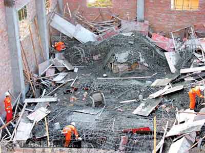 1月8日下午3時(shí)50分左右,14名施工者正在樓頂澆灌混凝土封頂,在沒有任何預(yù)兆的情況下,200多平方米的樓頂轟然墜落,毫無防備的14名工人隨之墜落。