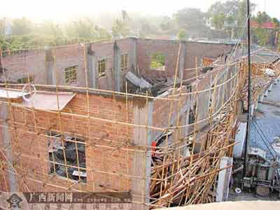 1月8日下午3時(shí)50分左右,陸川縣良田鎮(zhèn)的一棟在建樓房的頂面突然坍塌,14名在房頂施工的工人,隨著200多平方米的鋼筋混凝土頂面墜地。所幸的是,14名工人只是不同程度受傷。事故發(fā)生后,陸川縣相關(guān)部門立即趕赴現(xiàn)場救援,并對現(xiàn)場進(jìn)行了9個(gè)小時(shí)的搜索清理,以確保無遺漏。目前,幾名傷勢較重的工人正在醫(yī)院治療,事故發(fā)生原因還在調(diào)查中。