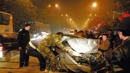 當(dāng)晚,交警經(jīng)過調(diào)查初步認(rèn)定,事發(fā)時,來自外地的三菱車是從白塔嘉陵江大橋向嘉陵區(qū)到武勝縣方向,在濱江大道處越過雙實(shí)線超車,與相對行駛的一輛馬自達(dá)轎車發(fā)生擦掛,引發(fā)馬自達(dá)轎車與一輛出租車相撞。此后,出租車又與后面一輛黑色轎車相撞,而外地來的三菱車在與馬自達(dá)轎車相撞后,向前沖出15米,又與一輛尼桑車發(fā)生相撞,兩車均損毀嚴(yán)重。