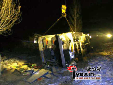 1月17日凌晨3時(shí)許,在大雪中,一輛載有35名乘客的大客車從塔城和豐縣開往烏魯木齊時(shí),途經(jīng)312國(guó)道4251公里處(呼圖壁縣境內(nèi))時(shí)與一輛大貨車迎面相撞,致使大客車側(cè)翻路基下,3人死亡,25人受傷。該事故還致使另外4輛車發(fā)生連環(huán)相撞。