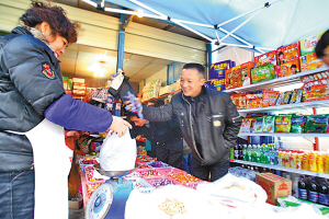 在這個(gè)市場里,幾乎所有的年貨都能買到:糖果、瓜子、蔬菜、水果、鞭炮、煙酒……連網(wǎng)吧和復(fù)印店,都能在市場里找到。