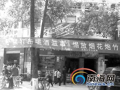 春節(jié)期間,五指山市民廖先生在五指山市主城區(qū)新華書店斜對面和毛陽鎮(zhèn)岔路口(五指山往瓊中、樂東的分路)看到,掛在路邊的大橫幅上的標語竟然寫著:“嚴禁打擊喝酒滋事,惕放煙花爆竹”,落款是五指山公安局。如此讓人大跌眼鏡的橫幅讓他感到很吃驚。(記者李灝通訊員廖涌權(quán)攝影報道)