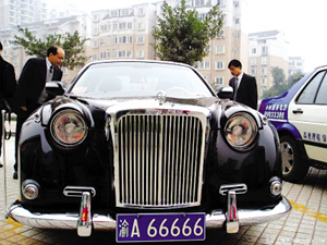 昨日,記者在論壇上看到,天涯網(wǎng)友“還說啥”貼出了兩張同樣懸掛著“渝A66666”藍(lán)底色車牌的豪華車,其中一輛為一臺限量版的日本光岡老爺車,據(jù)估計(jì)價(jià)格約為一千萬元人民幣。網(wǎng)友還指出,老爺車好像是重慶一開發(fā)商的。
