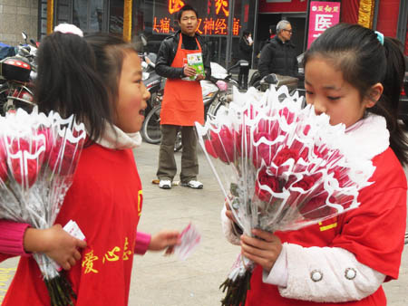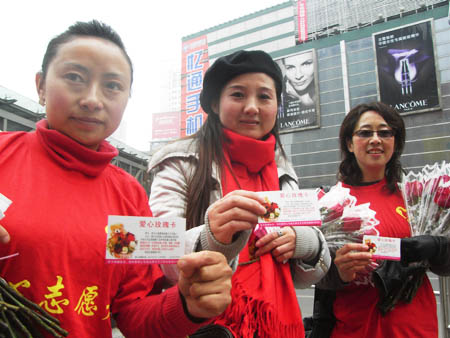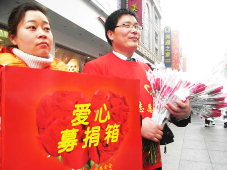 “買支玫瑰獻(xiàn)愛心吧,為災(zāi)區(qū)的孩子添本書。”2月14日,情人節(jié),數(shù)百名大河網(wǎng)友聚集二七廣場義賣玫瑰,所得善款將用于為災(zāi)區(qū)孩子購置愛心圖書。