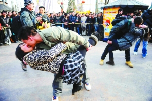 身邊的對(duì)手相繼落地,4號(hào)先生還在堅(jiān)持。當(dāng)主持人宣布他是唯一還沒倒下的人時(shí),他仍鉚著勁站了一會(huì)兒。“她真的挺沉的。”放下女友,4號(hào)先生重重地喘了口氣,女友則給了他一個(gè)大大的擁抱。這對(duì)4號(hào)情侶最終贏得了一部摩托羅拉手機(jī)!笆謾C(jī)送給女朋友,當(dāng)做情人節(jié)禮物!4號(hào)先生摟著女友,大聲地宣布。(記者王卡拉 實(shí)習(xí)生魏楠)