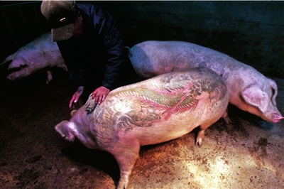 在北京順義區(qū)小店村,瑞士藝術家威姆德沃伊創(chuàng)建了一個“藝術農場”:給一群豬文身,然后將之作為威姆德沃伊的“作品”高價賣出,每頭豬能賣到70萬到100萬元人民幣。這種聞所未聞的“創(chuàng)作”因此引來了爭議。