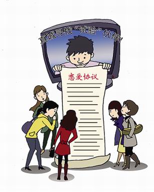 同時(shí),《協(xié)議》還賦予女方部分特權(quán)。如“女方如有任性、耍賴、強(qiáng)詞奪理、野蠻粗魯之過錯(cuò)行為,望男方以你寬闊的胸膛包容”、“男方絕不可以生女方的氣,不可賭氣不理女方,更不可打罵女方”等等。最重要的,合同還允許女方可以隨時(shí)提出分手,男方不得有意見,更不得糾纏。