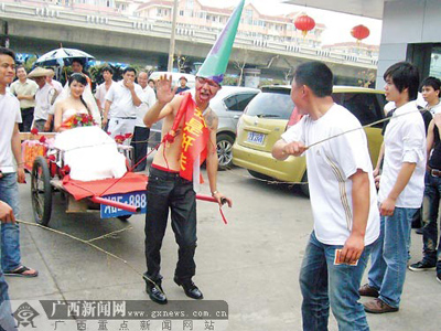 對此,廣西民族大學(xué)民族學(xué)與社會學(xué)學(xué)院的龔永輝教授表示,結(jié)婚是喜事,首先要祝福這對新人,但如此接親有悖社會的和諧和文明,確實(shí)有過度惡搞之嫌。在新人身上貼“奸夫淫婦”,有損新人的人格,還可能會造成不知情的旁人誤會。新人如果要按照老家風(fēng)俗迎親,可以適當(dāng)玩些花樣,但一定要把握尺度,選擇大家都能接受的方式,最好能考慮一下市民的感受。(記者鄧師煒)