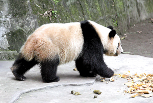 記者發(fā)現(xiàn),幾只熊貓的白色毛基本都有泛黃現(xiàn)象,特別是背部和尾部特別明顯。記者介紹網(wǎng)上帖子內(nèi)容后,飼養(yǎng)員張乃成介紹說(shuō),重慶潮濕陰雨的天氣,是造成熊貓毛色泛黃的原因之一!靶茇埾矚g在地上玩耍,免不了會(huì)沾上泥土灰塵!睆埬顺煞Q,根據(jù)熊貓毛色的干凈程度,飼養(yǎng)員會(huì)不定期為它們洗澡,但毛色是洗不掉的。冬季熊貓毛色不如夏季看起來(lái)那么亮,3、4月份換毛后,看起來(lái)就干凈多了!