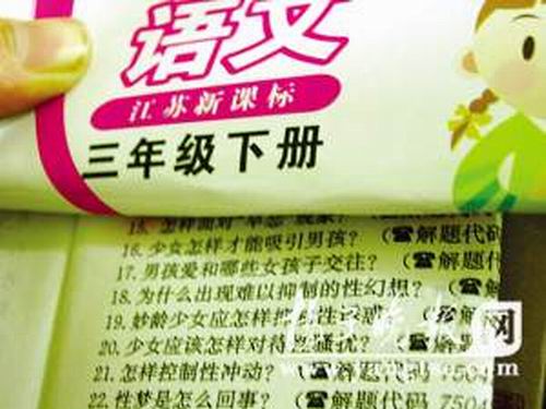 而對于在低年級書本中出現(xiàn)涉性的問題,該人士表示自己并不清楚,可能是相關(guān)機(jī)構(gòu)自己添加的。隨后他又補(bǔ)充說,這些話題其實是和素質(zhì)教育有關(guān)系的,在學(xué)校里學(xué)生是學(xué)不到的,因此就作為輔導(dǎo)材料的補(bǔ)充,多增加點知識也是好事。