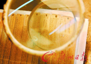 昨日(7日)下午,記者在黃作旒家中見(jiàn)到,刻著《紅樓夢(mèng)》全書(shū)的竹片每塊長(zhǎng)約24厘米、寬約1厘米,每片刻字3000余個(gè),每個(gè)字大小約0.6平方毫米,要用15倍放大鏡才能看清楚。