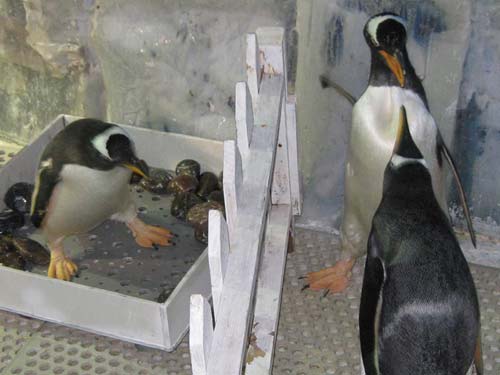 “面壁思過”了幾天后,它們重回故園?紤]到它們想當父母的心情,趙毅給了它們一個“安慰獎”———一枚假企鵝蛋。結(jié)果,它們馬上安靜下來,趴在早已用鵝卵石搭建好的“產(chǎn)房”一心一意孵起蛋來。趙毅發(fā)現(xiàn),它們的孵化本領(lǐng)非常高,甚至比已經(jīng)產(chǎn)蛋的企鵝媽媽更加熟練。