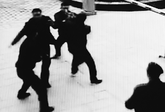 從目擊者的描述和監(jiān)控錄像上來看,群毆中,動用了鐵棍、木棒,幾名身著保安制服的人還手持警棍。最后,10多名保安被3名男子打得一直逃到了教工路上。