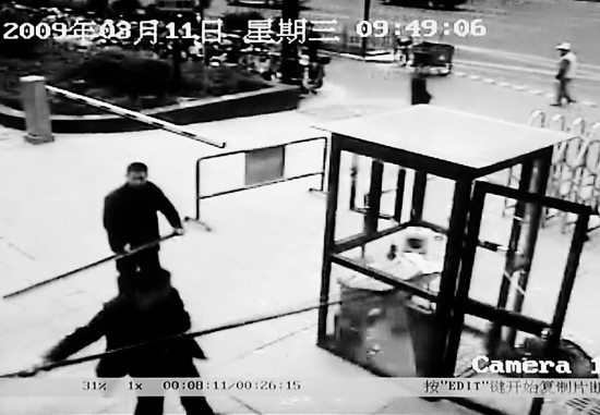 這一來,保安的戒備心終于放下了,還跟記者聊起了天。“你來晚了,剛剛打得太精彩了,我本來想用手機(jī)拍下來的,沒來得及!薄八麄(指業(yè)主)太兇了,手持一米多長的三角鐵。不說了,太可怕啦!”