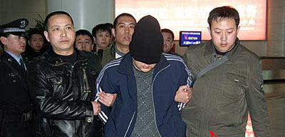 據(jù)了解,3月13日晚上,由“3.08”特大搶劫殺人案專案指揮部派遣的13名辦案民警,乘坐火車趕赴滿洲里。14日上午,民警們從滿洲里公安局看守所將這3名犯罪嫌疑人押出,乘坐飛機(jī)押解回呼。當(dāng)日16時(shí)許,記者來(lái)到呼和浩特白塔國(guó)際機(jī)場(chǎng)。記者注意到,3名犯罪嫌疑人的頭上都被蒙上了頭套,無(wú)法看出他們的長(zhǎng)相。這3人的個(gè)子并不高,其中1人比較胖,另兩人都較瘦小,能夠看得出他們的年齡并不大。雖然他們打扮成學(xué)生模樣,但是他們的穿著還是引起了大家關(guān)注,因?yàn)樗麄兌忌碇鴯湫碌陌⒌线_(dá)斯牌的上衣和褲子,腳上穿的也是阿迪達(dá)斯牌的鞋子。據(jù)民警講,這衣服是他們逃亡到北京后用搶劫到手的錢購(gòu)買的。