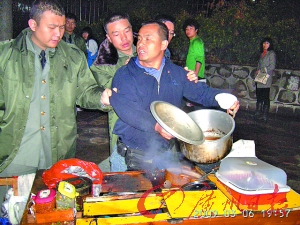 據(jù)曹圖深介紹,3月6日晚8時15分,7名城管隊(duì)員巡查至南方醫(yī)院門前的公交站時,見到近段時間一直在該處無證占道經(jīng)營油炸臭豆腐、曾被多次教育勸諭的江西籍“走鬼”陳×鴻夫婦又在該處開檔,便上前要求陳×鴻夫婦迅速收拾“架撐”離去,隨即遭到陳×鴻惡罵。分隊(duì)長高斌與隊(duì)員周翌、徐勇看見陳×鴻支在手推車上用來炸臭豆腐的一鍋油正冒著煙,便一邊按住油鍋,一邊繼續(xù)勸其趕快收拾好離開。