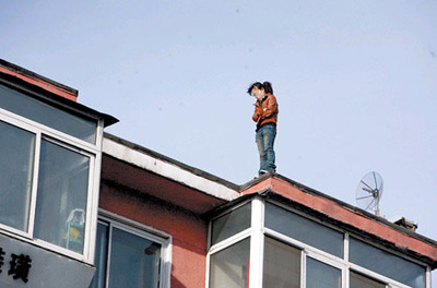 昨天(16日)13時(shí)許,一名年輕女子爬上長(zhǎng)春市同志街與清華路交會(huì)處一棟樓頂,欲輕生。消防戰(zhàn)士和派出所民警一直勸說(shuō),她始終不肯下樓。