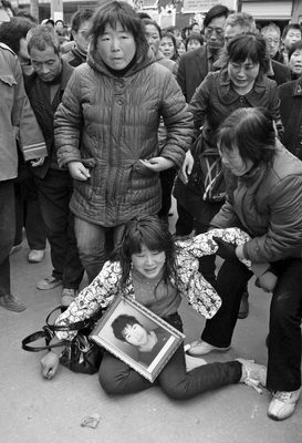 3月13日上午9時,鞭炮清脆炸響,不是因為喜慶而是送喪。運送徐梗榮尸體的面包車從陜西省丹鳳縣醫(yī)院駛出又停下。徐的母親及大姐癱坐地上,放聲慟哭。她們不滿縣公安局不兌現(xiàn)承諾:出動一輛警車在前開道。一番僵持,一輛巡警車終于開來,徐梗榮,這個19歲少年的尸體在警車開道下,被送回40公里外的寺坪村家里。