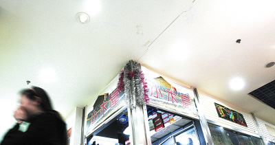 昨日中午,記者在現(xiàn)場(chǎng)發(fā)現(xiàn),其主要通道和許多門市的墻面上開始清晰地出現(xiàn)大小不一的裂縫!案杏X像每天都在經(jīng)歷地震!贝笃航鹣笫兰业叵律虉(chǎng)C區(qū)105號(hào)商戶趙庭明指著頭頂附近的一條裂縫說,前天上午,巨響突然傳來,一位恰巧經(jīng)過的老太以為發(fā)生地震嚇得當(dāng)即蹲倒在地。