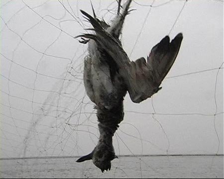 記者拍攝到的這個捕捉住小鳥的網(wǎng)叫天網(wǎng),天網(wǎng)是捕捉天鵝最常用的一種方法,在天鵝食物比較豐富的湖邊加起這個網(wǎng),天鵝起飛或降落時,很容易就會被網(wǎng)纏住。