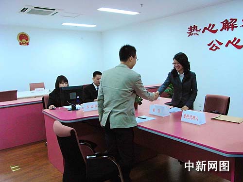 記者了解到,該工作室選擇了便于握手言和的“T型圓角”形狀的調(diào)解桌,桌子猶如一把鑰匙,寓意著打開當(dāng)事人雙方的心結(jié)。而粉紅的色調(diào),綠色的植物,布藝的椅子更增添了工作室溫馨如家般的氛圍。