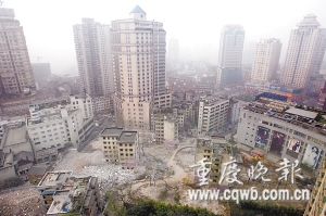 “轟!”昨天早上8點,伴隨著一聲巨響,江北觀音橋商圈渝北二村二號地塊的6棟居民樓瞬間倒塌,整個過程僅有1.5秒,絲毫未影響到周圍密集的居民區(qū)和各種管網(wǎng)。據(jù)悉,這是今年我市危舊房改造的第一爆,爆破原址將建200多米高五星級酒店,成為江北第一高樓。