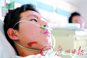 昨日中午,湖北沙市大學大三學生尹浩躺在南海松崗醫(yī)院病床上,當回憶起前天下午那噩夢般的一幕時,他禁不住再次黯然神傷。這一切,源于光天化日之下、發(fā)生在鬧市區(qū)的一起劫案。兩個血氣方剛的青年,與年齡相仿的3名狂徒,搏斗了10分鐘后,錢包保住了,而自己的表弟高斌卻永遠地離開了……