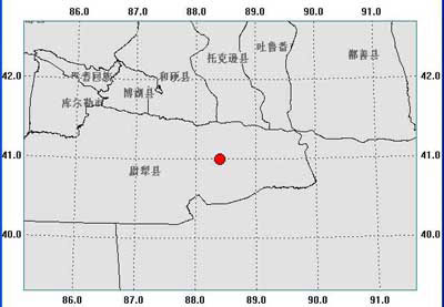 據測定,此次地震震中位于北緯 41.0°, 東經 88.4°。目前還沒有人員傷亡和財產損失的報告。
