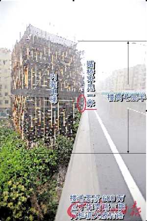 自建房距離華南路三期不足1米,房子和華南路仿佛在跳“貼面舞”。更讓人驚奇的是,該自建房不但每層都有6套大小不一的套房,而且還安裝了電梯。工地負責(zé)人說,如果全部賣出,這棟房子的身價高達600多萬元。