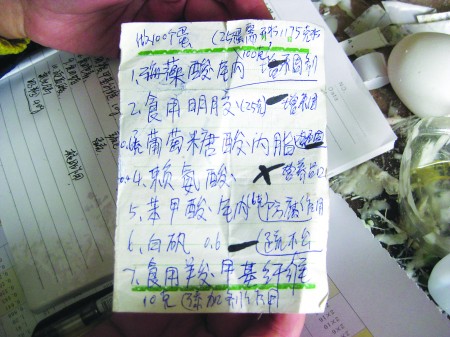 “考慮到任某培訓(xùn)造假雞蛋技術(shù)用的是有毒有害的化學(xué)物質(zhì),行為比較惡劣,有可能危害公共安全,且這是一個新生的違法案例,查辦起來可能涉及多個部門,下午從調(diào)查現(xiàn)場回來后,鄆城縣工商局、公安局立即向縣政府以及菏澤市工商局和食品安全委員會做了匯報。”下午5時,張科長在電話中告訴記者。